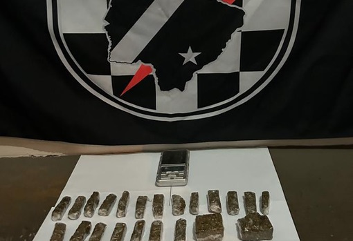De acordo com a PM, a por volta das 17h, uma guarnição da Força Tática, após tomar conhecimento de denúncias versando a venda de drogas na Viela P, no Jardim das Acácias, intensificou o policiamento através de rondas para averiguar a denúncia, logrando êxito em abordar o indivíduo alvo e localizaram com ele 01 sacola contendo 24 porções prontas para venda de substancia análoga a maconha, pesando 240 gramas.