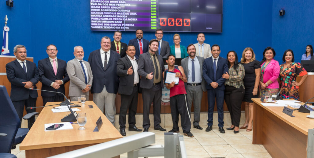 Na manhã desta segunda-feira (27), os vereadores se reuniram para realizar a 40ª sessão ordinária de 2023. Ao todo, 33 matérias compuseram a pauta do dia, sendo 25 aprovadas, sete encaminhadas para comissões permanentes e uma retirada de pauta após pedido de vistas. Com requerimento do vereador André Bittencourt, foi entregue Moção de Congratulação ao senhor Cauê Leituga Franco Furtado.