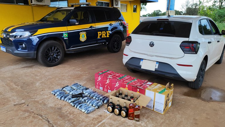 Além da droga foram apreendidas 82 garrafas de whisky estrangeiro.