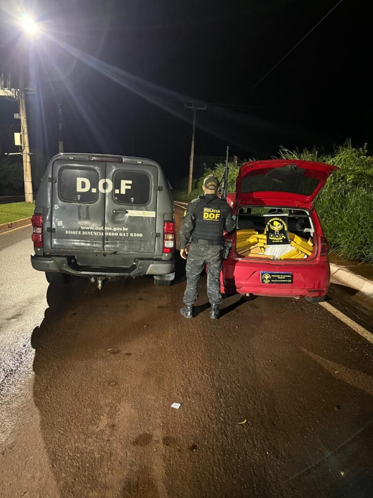 Uma carga avaliada em R$ 600 mil em maconha foi apreendida por policiais do Departamento de Operações de Fronteira (DOF) neste domingo (9), na MS-164, em Maracaju. A droga, que pesava 282 quilos, estava sendo transportada em um VW Fox e tinha como destino final o estado de Minas Gerais.